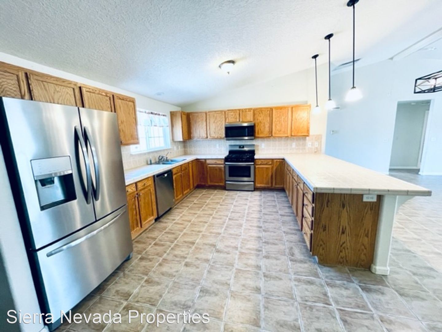 4 bed, 2 bath, 3 car garage with a big yard - 4 bedroom, 2 bathroom, 3 car garage, gorgeous kitchen with tons of counter space, breakfast bar, tile flooring through out except for the bedrooms have carpet. Comes with washer, dryer and newer refrigerator, central vacuum. Large patio in back, and additional patio area in front, raised garden box, exterior paint is newer, interior paint is new.